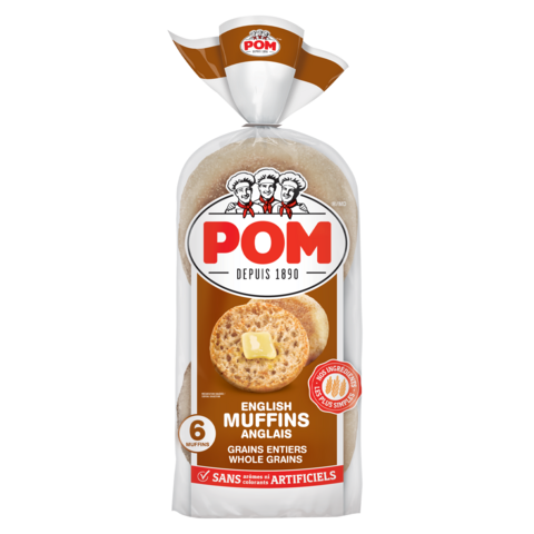 POM® Whole Grains English Muffins are baked with our simplest ingredients and no artificial flavours or colours. Made with 100% whole wheat, they’re a tasty breakfast staple with nooks and crannies ready to be filled with your favourite toppings.Pack of 6; 340 g