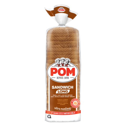 Le pain à sandwich de blé entier à 100 % long ultra-moelleux POM🅫 est fabriqué au Québec avec nos ingrédients les plus simples. Choisissez ce délicieux pain tranché pour préparer vos sandwichs préférés.675 g