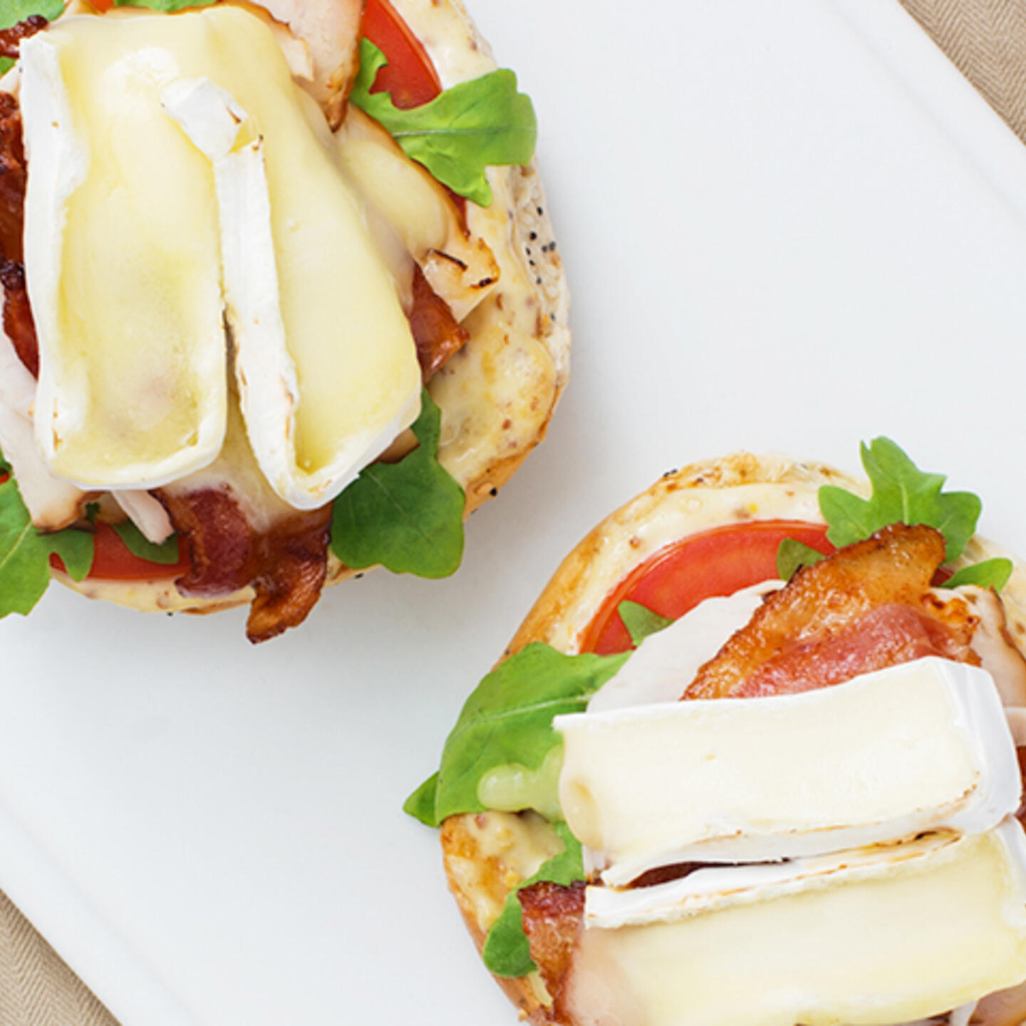 Préparé sur un bagel tout garni, ce sandwich avec du fromage fondant sur une galette de viande est encore plus savoureux que la version classique.