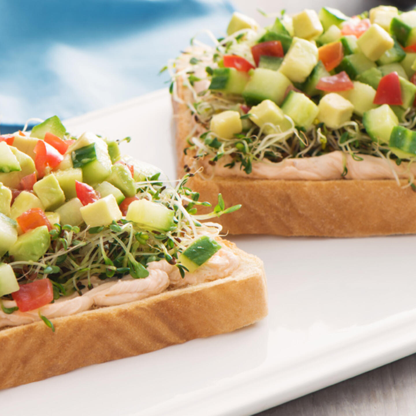 - Étaler le mélange sur 2 tranches de pain et garnir chacune des tranches de la moitié du chou.